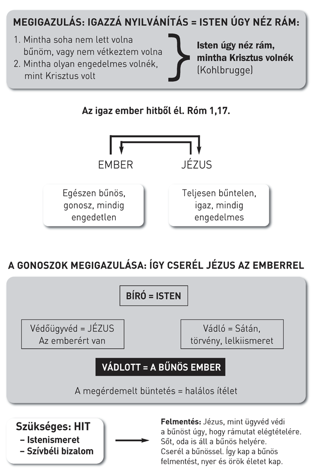 Isten azonban felfoghatatlan szeretetével nekünk ajándékozza Krisztus igazságát. Krisztus helyettünk elhordozta Isten haragját, és ezzel felmentést és igazságosságot szerzett nekünk. Isten igazzá nyilvánít bennünket, bár egyáltalán nem vagyunk igazak. Csak Krisztusban vagyunk igazak Isten előtt és az örök élet örökösei (HK 59. kérdés és felelet). Megtart-e Krisztus minden embert, mint ahogy Ádámban mind elbuktak? Nem, hanem csak azok, akik őszintén hisznek Jézus Krisztusban. Jézus azt mondta: „Aki hisz a Fiúban, örök élete van; aki pedig nem enged a Fiúnak, nem lát életet, hanem az Isten haragja marad rajta” (Ján 3,36).